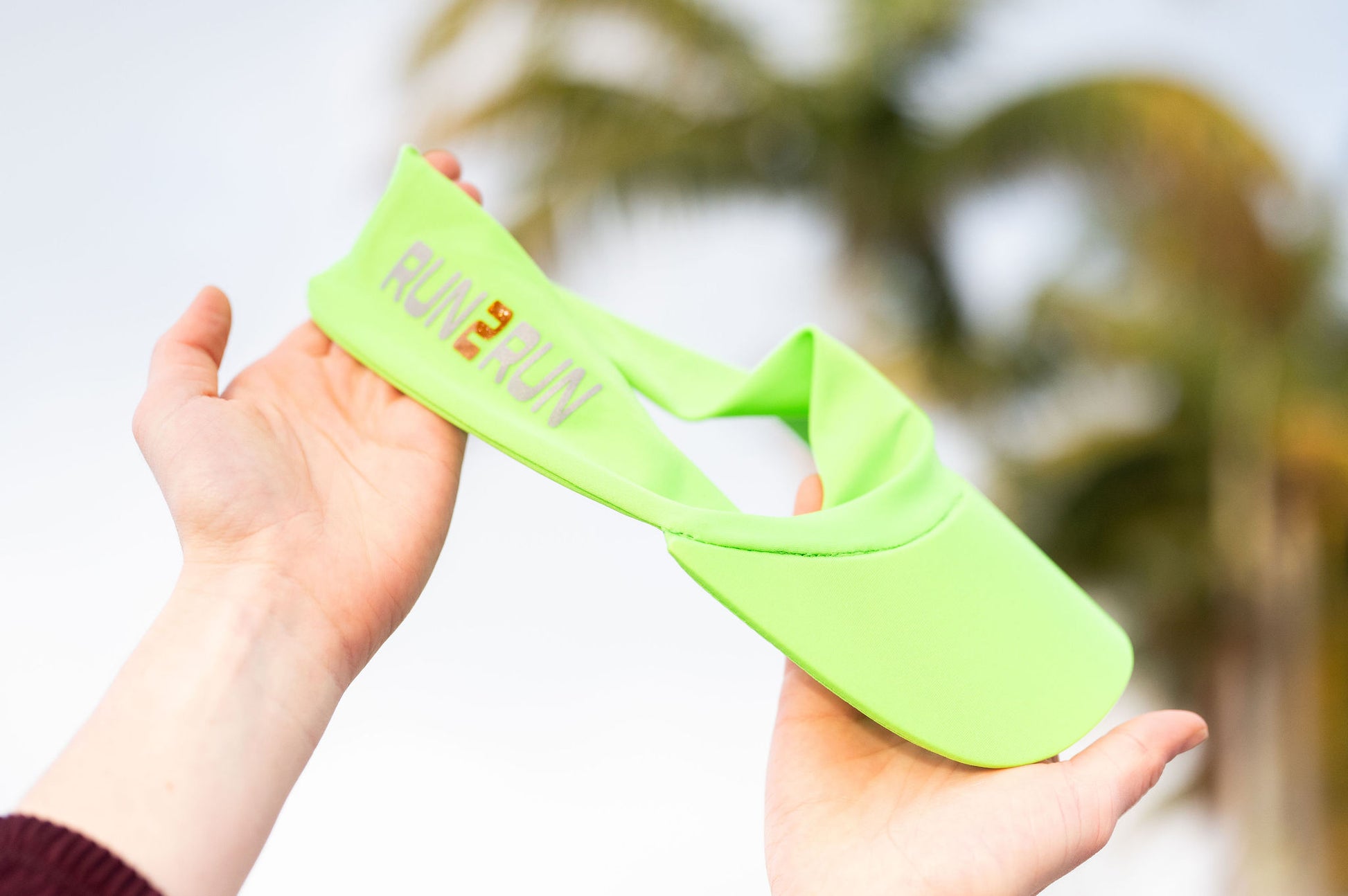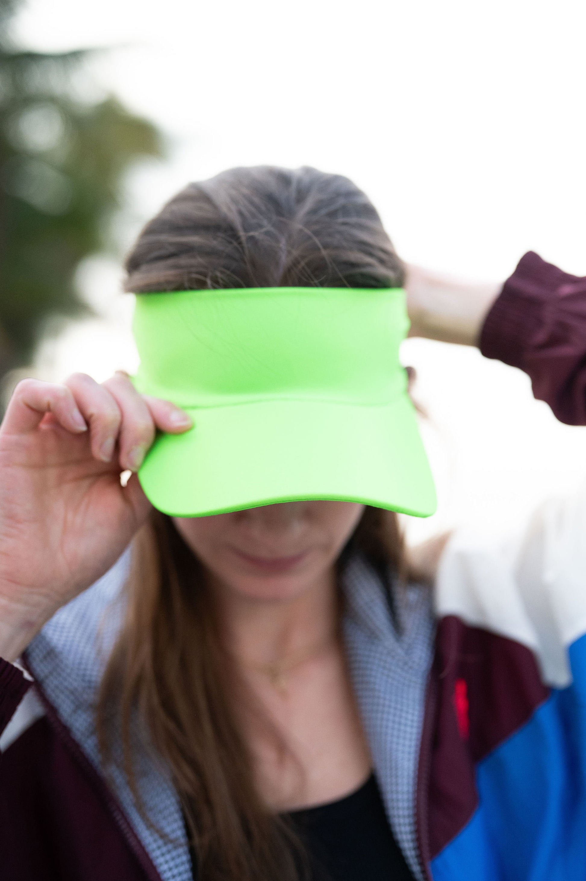 Comfortable polyester spandex headband with plastic brim. Visor has no buckles, Velcro, or snaps. This product is machine washable/air dry and packable.